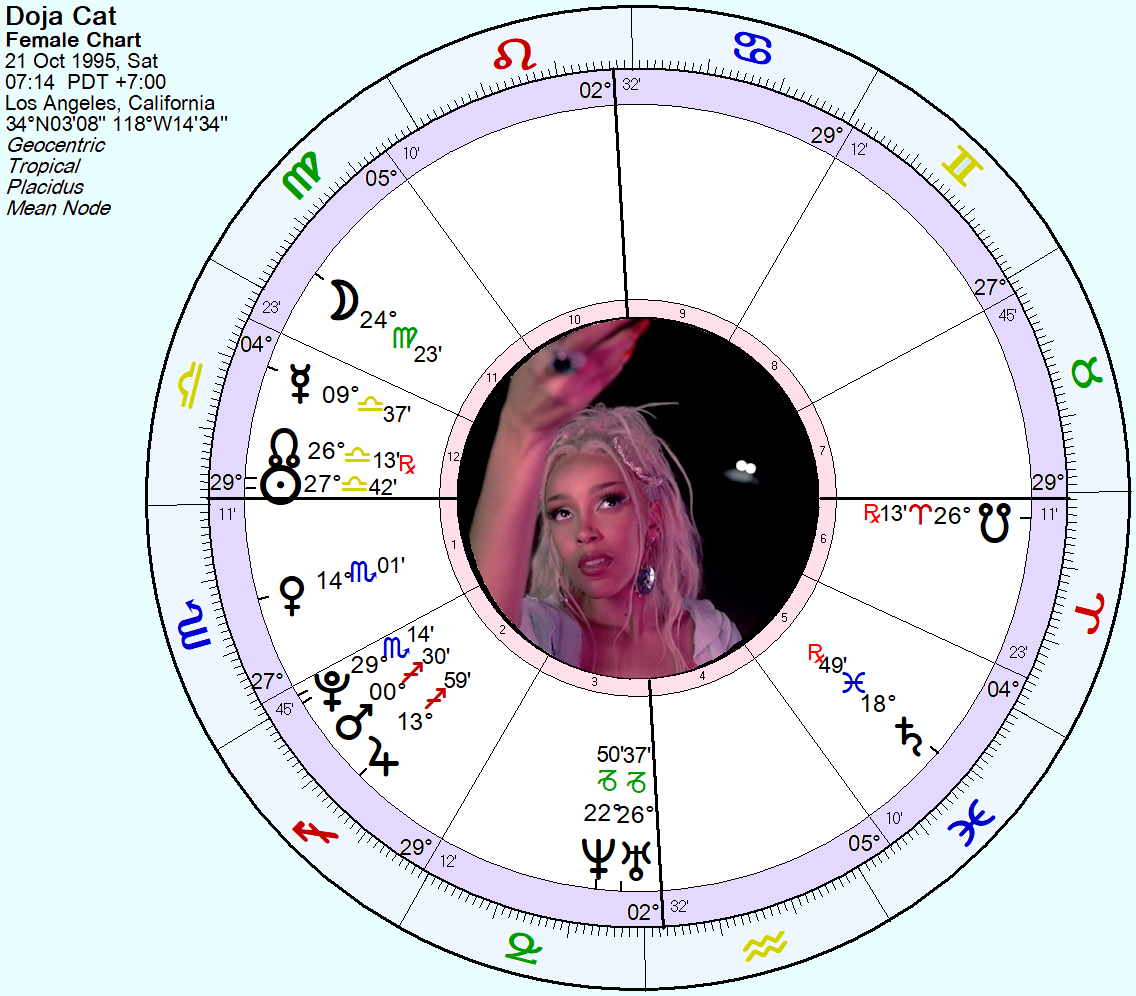 ובכן, מנקודת מבט של אסטרולוגיה מסורתית, הכוכב הכי חשוב במפה זו לא השמש, זה גם לא הירח, ואפילו האופק לא סוגר כאן פינה. הכוכב הכי חשוב במפה הוא שליט האופק, או שליטת האופק במקרה של דוג'ה קאט. שליטת האופק שלה, ונוס, בתור הכוכב שיש לו קשר לאופק במאזניים, נמצאת במזל עקרב.